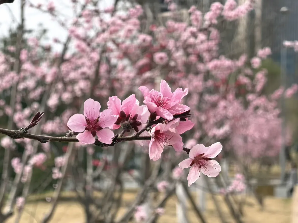 说是桃花,其实仔细调研下来,有的叫做榆叶梅、有的叫紫叶李,还有的叫做美人梅。